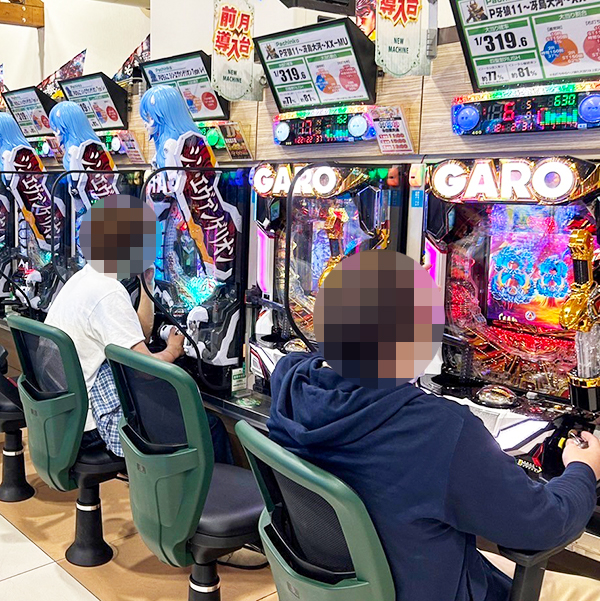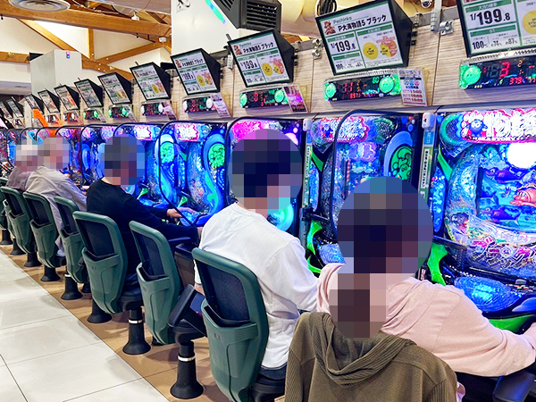 14時過ぎの2.222円パチンコでは「P大海物語5 ブラック」や「P牙狼11〜冴島大河〜XX」、「ぱちんこ シン・エヴァンゲリオン Type レイ」の注目度が高く、プレイヤーの嬉しそうな表情を確認している。