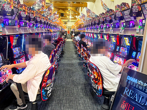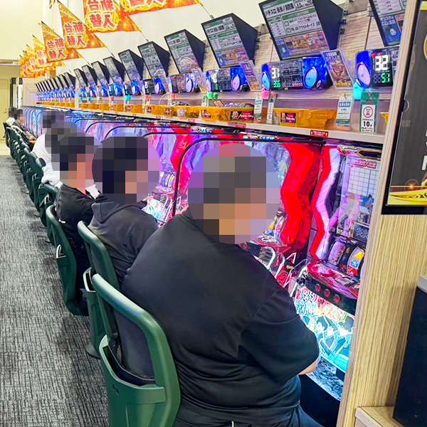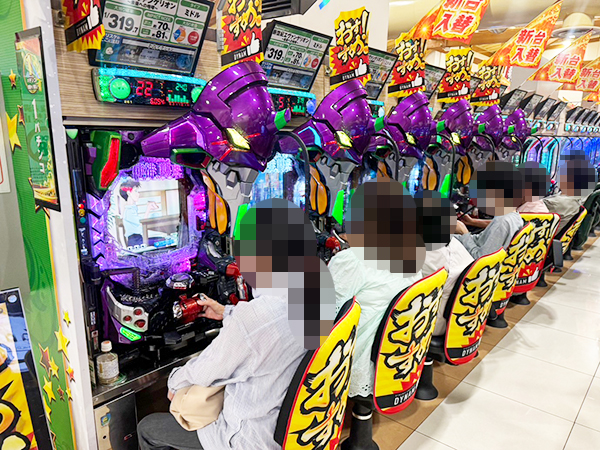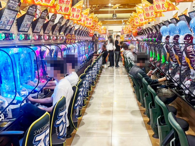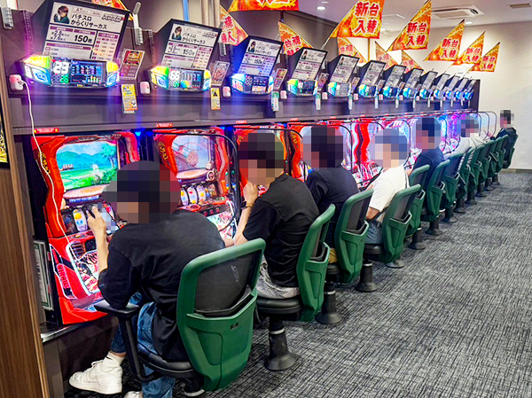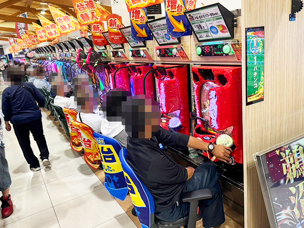 取材時は既に多くのプレイヤーが集結し、パチンコ・パチスロを問わずにぎやかな状況となっていた。