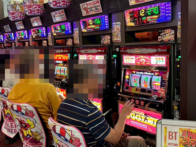 「ゴーゴージャグラー3」に空き台はなく、20回以上のボーナスを獲得している台もあった。