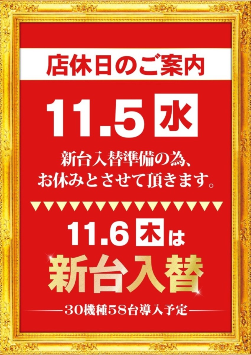 10月7日(火)☆あさ9時OPEN☆ 新台開放予定!