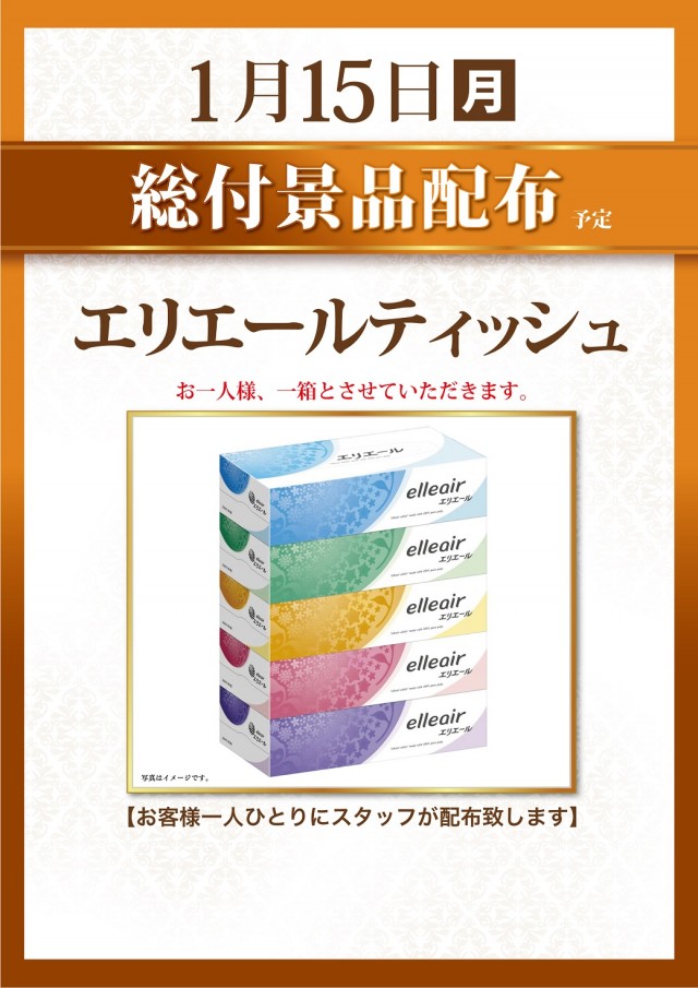 1月15日(月)あさ9時OPEN!総付景品配布☆