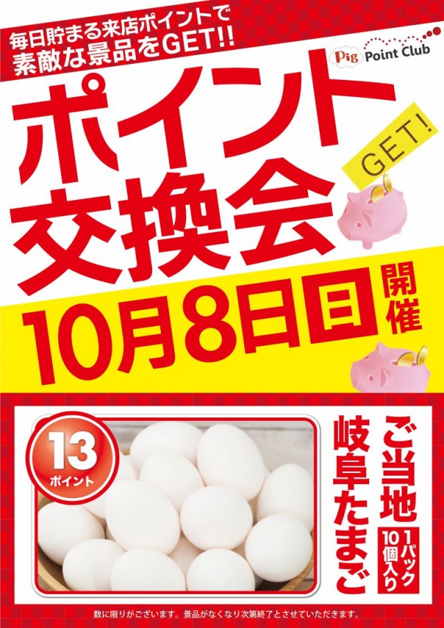 10月8日(日)朝9時開店&来店ポイント交換会