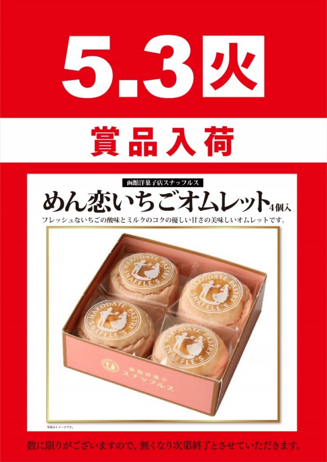 5月3日(火)朝9時開店!スイーツ賞品入荷♪