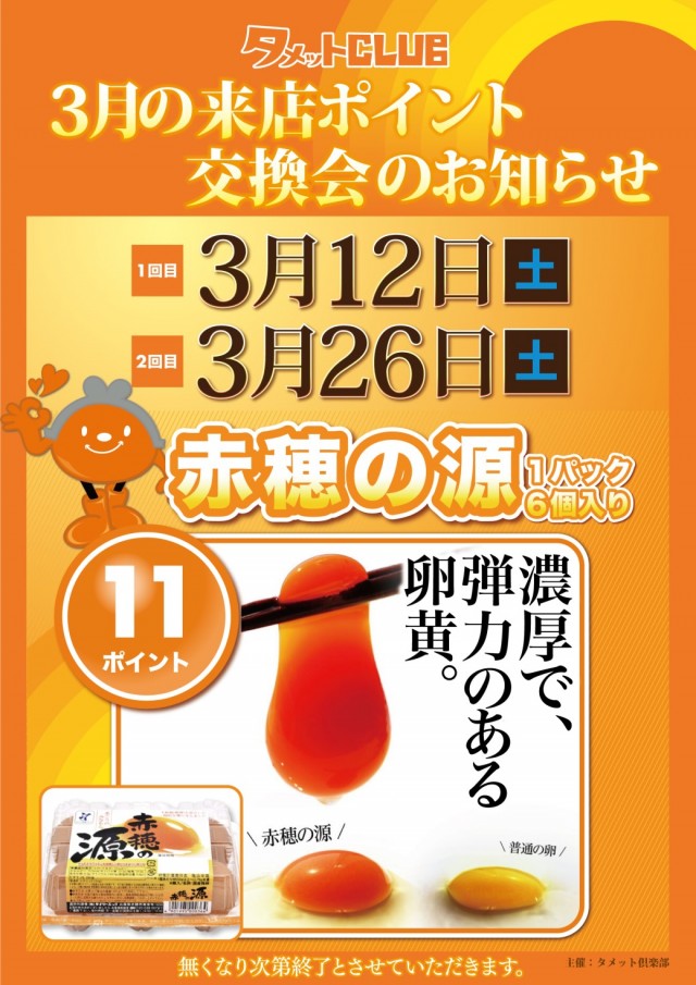 3月26日(土)来店ポイント交換会開催☆