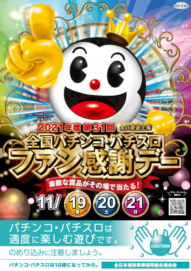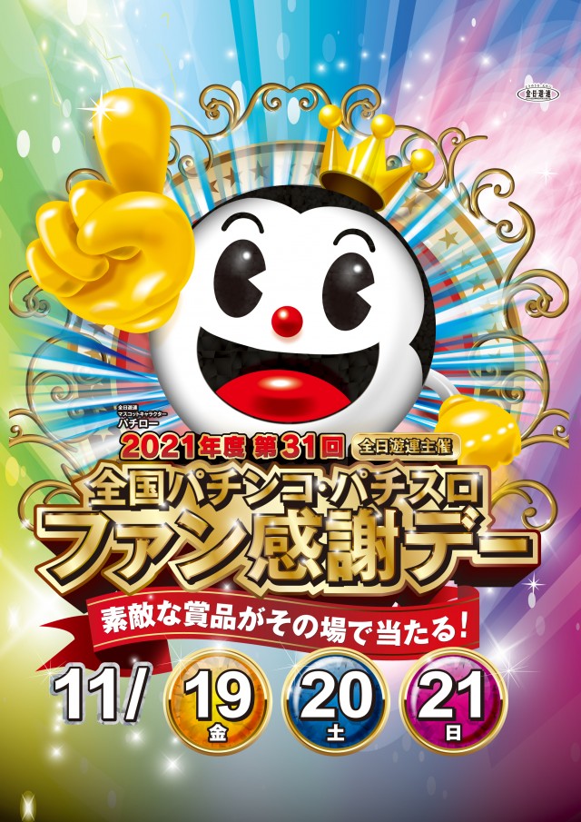 明日11月21日(日)朝9時開店!ファン感謝デー&総付配布♪