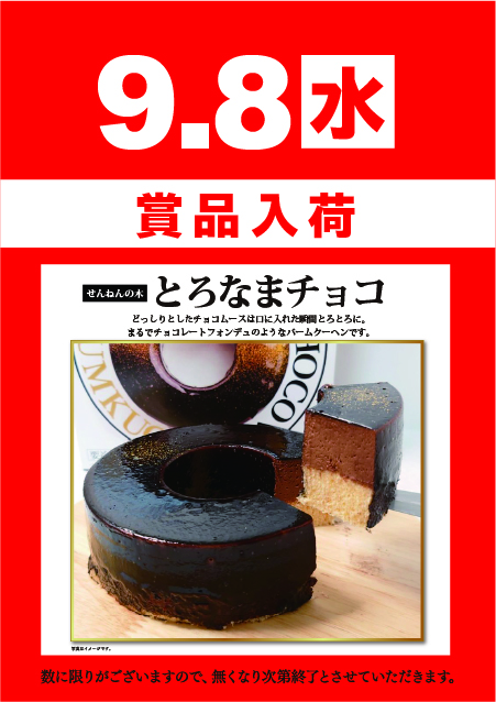 明日9月8日(水)朝9時開店!スイーツ賞品入荷♪
