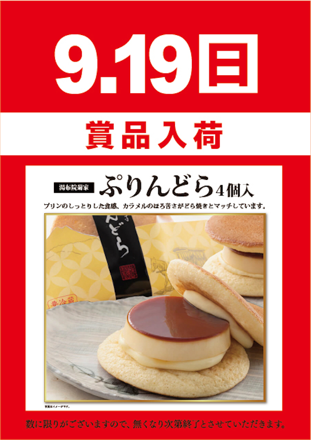 明日9月19日(日)朝9時OPEN!スイーツ賞品入荷♪