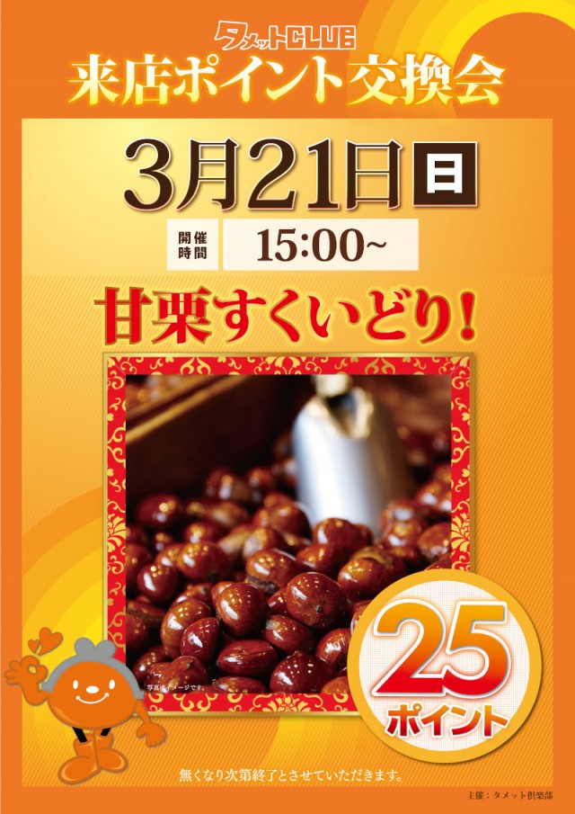 3月21日(日)朝9時開店!タメットポイント交換会実施♪