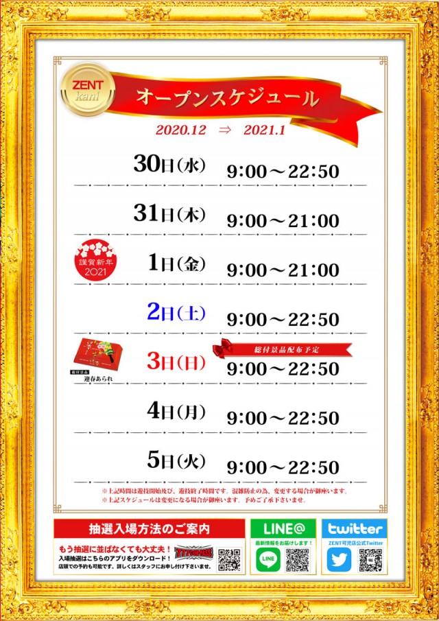明日12月27日(日)朝9時開店!賞品入荷予定♪