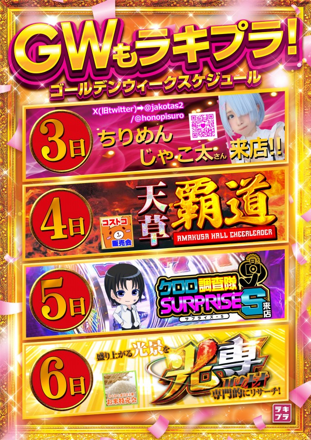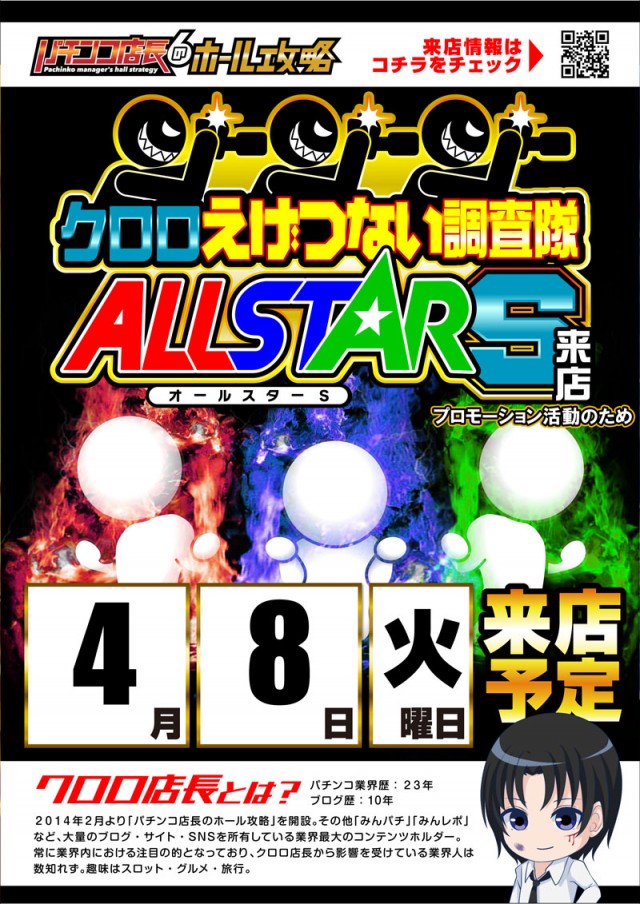 4/8(火)新台入替&クロロALLSTARS来店予定