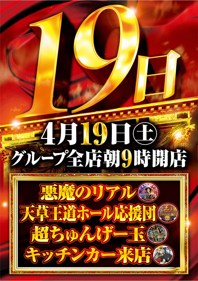 4/19(土)超ちゅんげ玉、悪魔のリアル、天草ホール応援団!