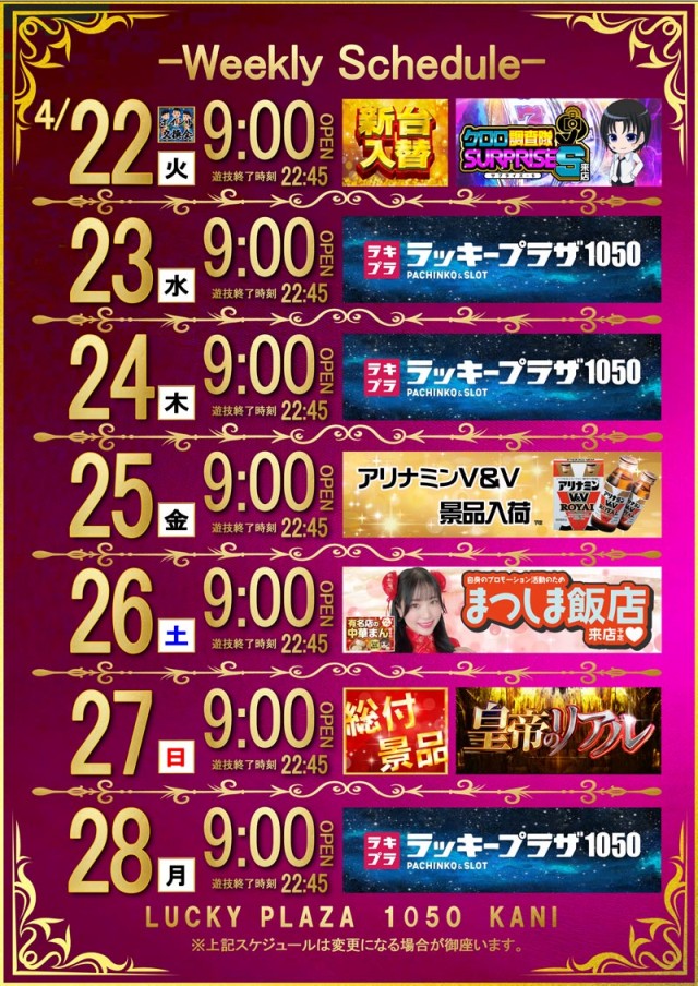 ラッキープラザ1050可児店のお知らせ一覧