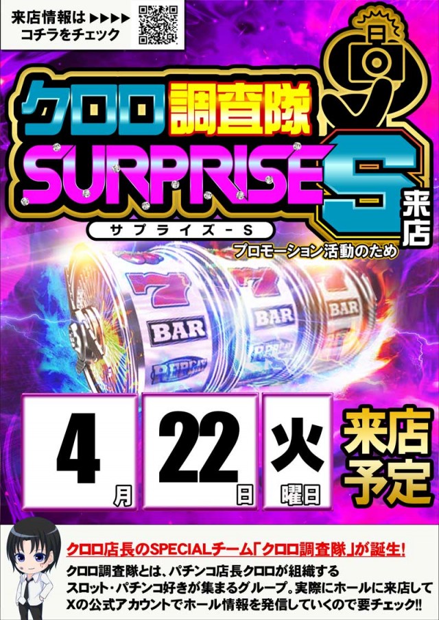 4/22(火)新台入替予定!クロロサプライズSも来店予定!