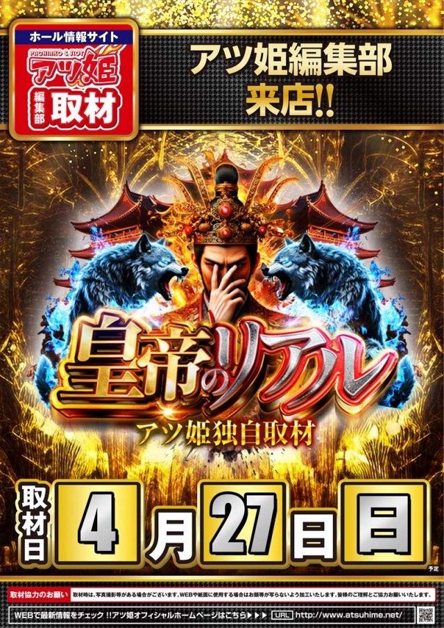 4/26(土)まつしま飯店来店予定!28(日)皇帝のリアル!