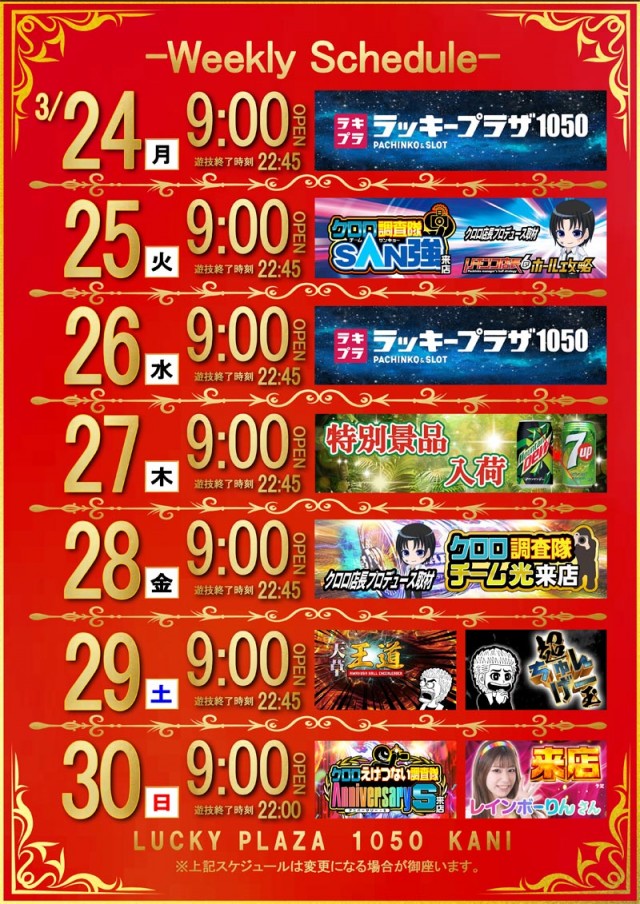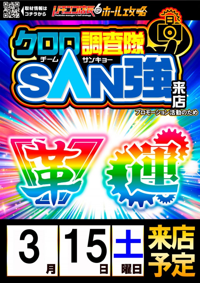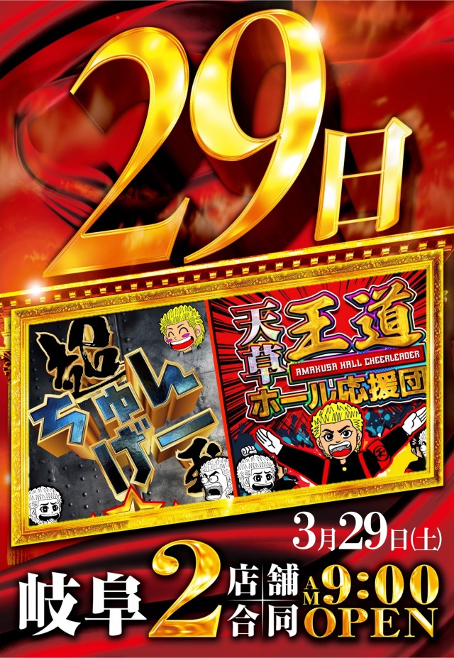 3月29日(土)超ちゅんげー玉&天草王道ホール応援団来店予定