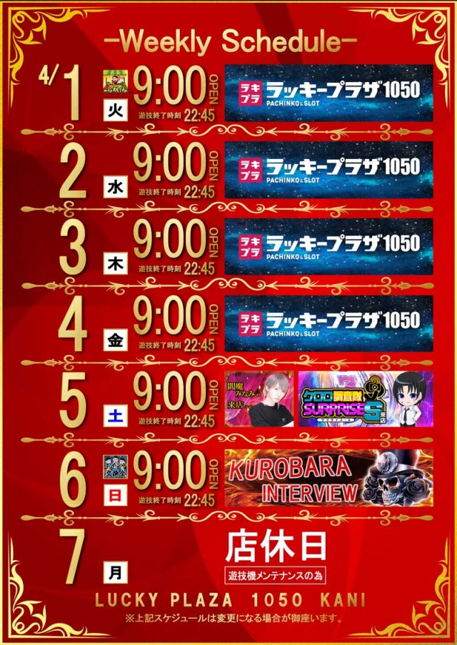 4/5(土)閻魔みなみさん&サプライズS。4/6(日)黒バラ