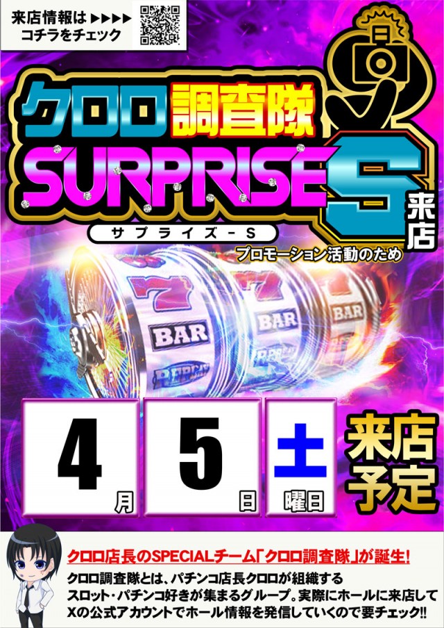 4/8(火)新台入替&クロロALLSTARS来店予定