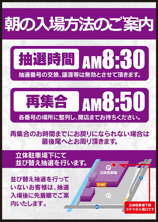 抽選受付はLINEにて前日21時~当日8時30分まで受付中! |