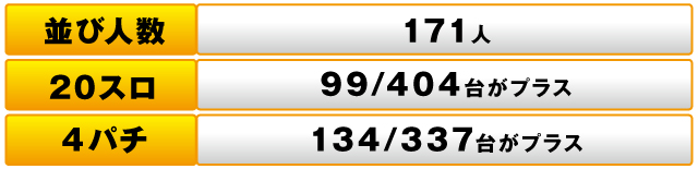 パチンコ全体でも、337台中134台がプラスで、トータルの差玉数でも大幅なプラスをマークし、こちらも前回に続いての連勝を決めたのであった。