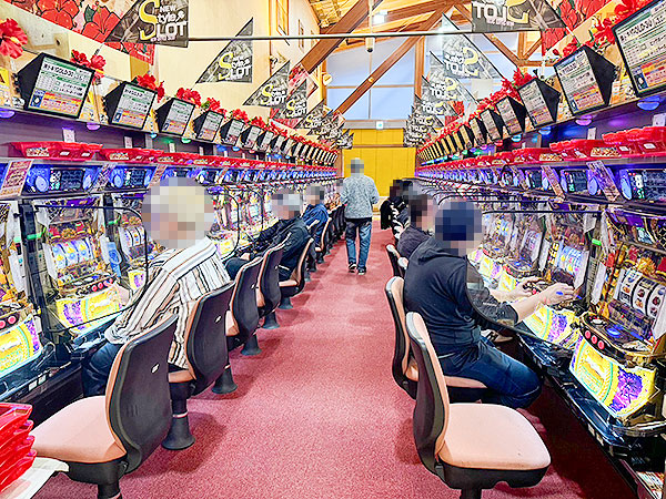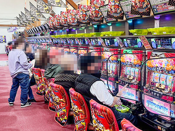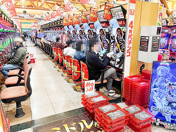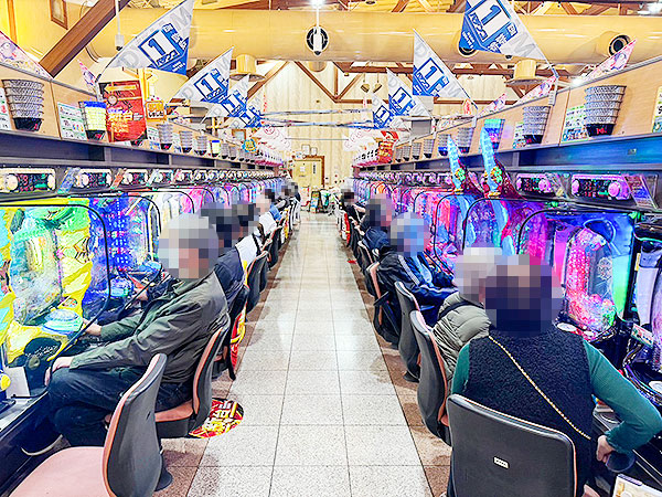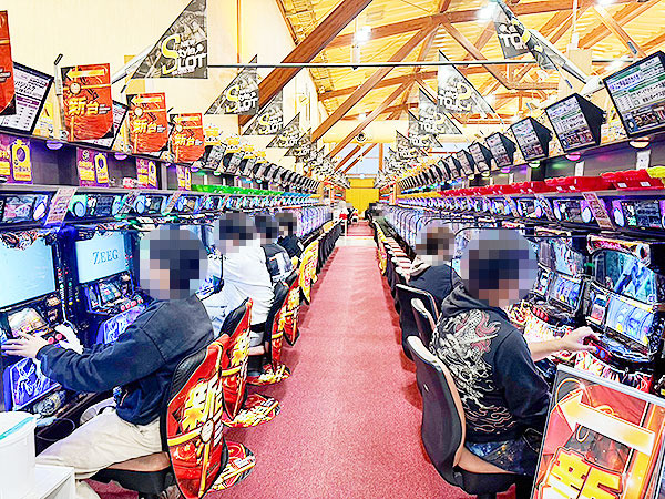 100円/90玉パチンコは機種を問わず高稼働。遊技を楽しむプレイヤーたちの姿が印象に残っている。