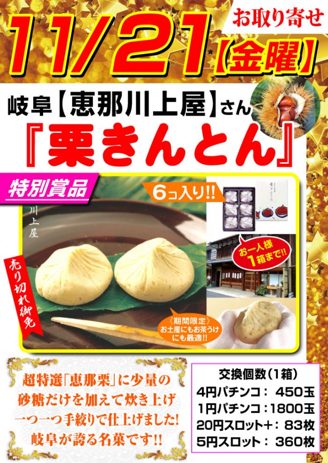☆明日21日『金』グリフィン取材PR!!栗きんとん入荷!!