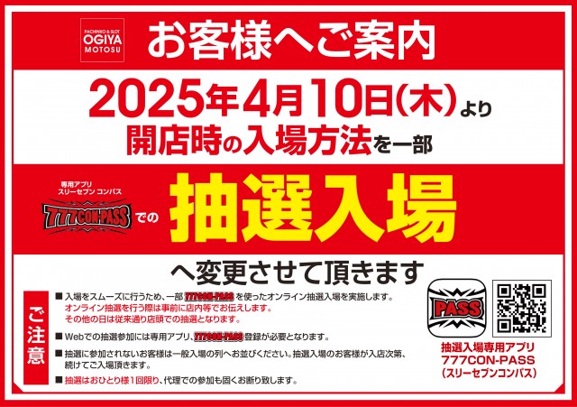 本日20日★777CON-PASSでの抽選入場!!!!!!!