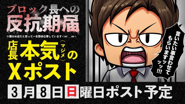 明日、ブロック長への反抗期届!!当店Xを要チェック🌟