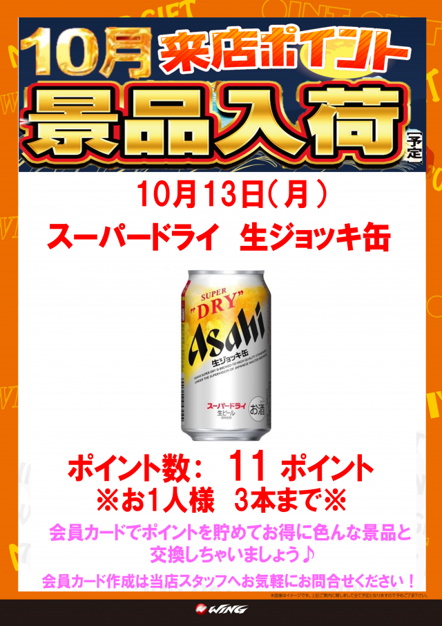 さらに!!来店ポイント景品で生ジョッキ缶入荷してます数に限りがあるのでお早めに!!