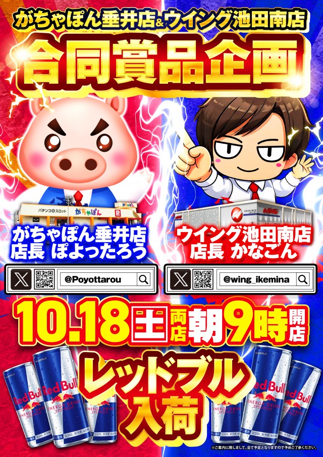 明日は・・・がちゃぽん垂井×イケミナ!!レッドブル合同入荷🌟