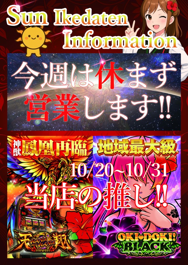1位 10月19日(日) 2位 10月26日(日) 3位 10月18日(土)