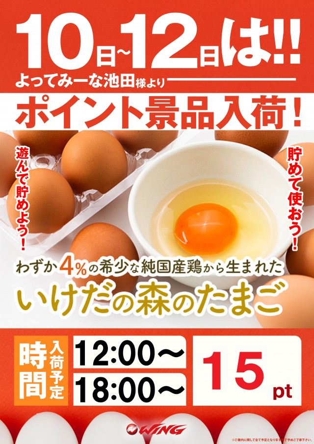 18時ポイント景品たまご入荷です(予定)