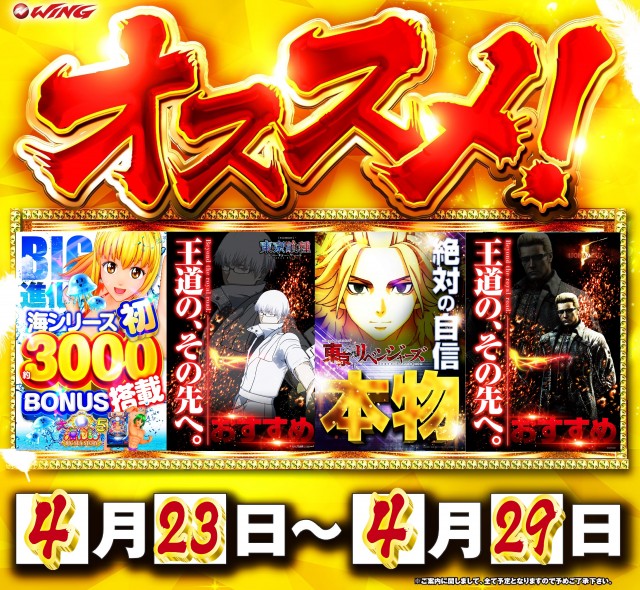 明日、ウイング池田店は新台入替!ご来店をお待ちしております!