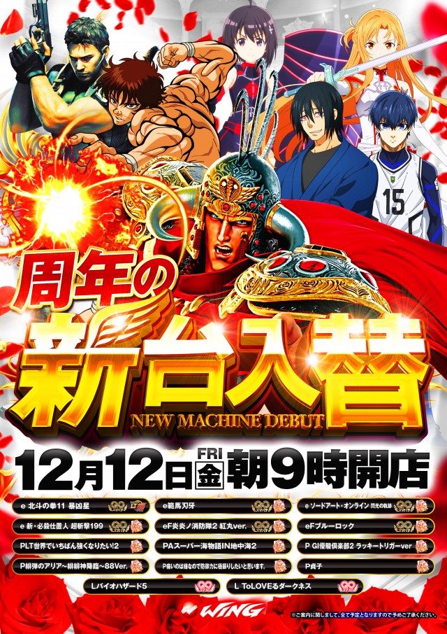 ウイング池田店は本日12月12日新台入替