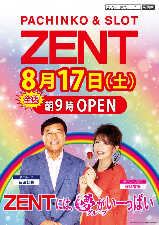 新キャンペーン始動━━━━━━━━━━━━━━━━━━━ZENTには夢グループがいーっぱい8月17日(土)全店朝9時OPEN━━━━━━━━━━━━━━━━━━━