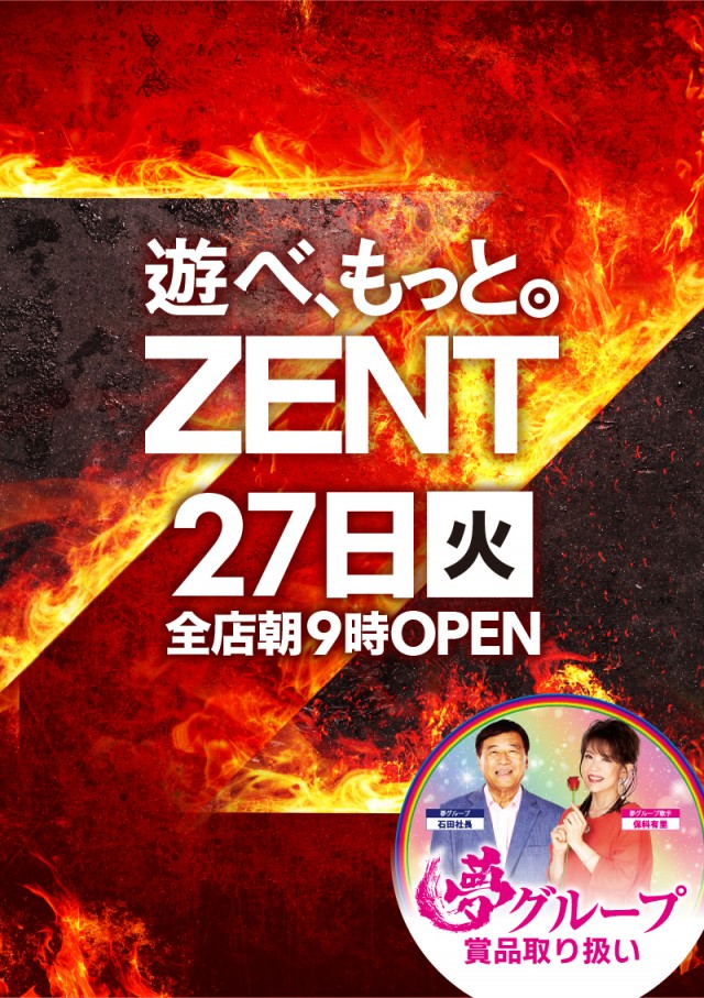 【27日】ZENT全店朝9時OPEN 夢グループ×ZENT