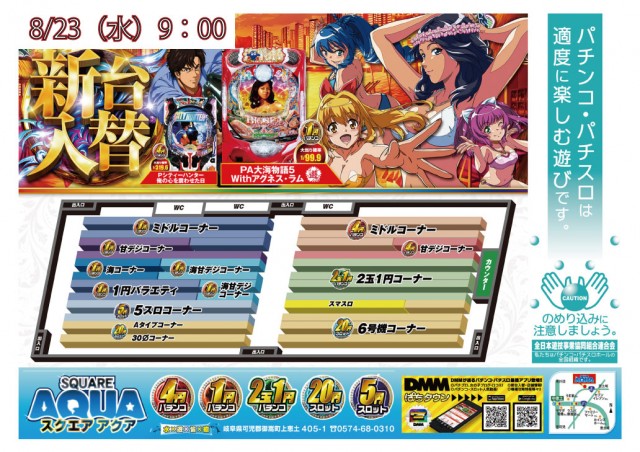 スクエアアクア明日8/23日新台入替初日