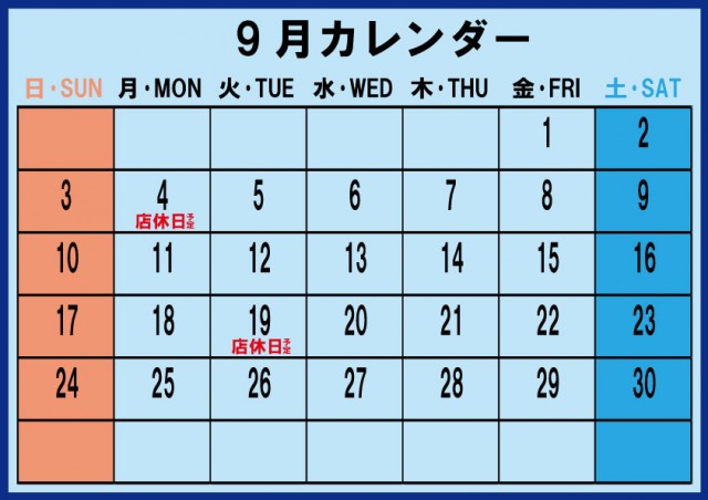 明日9/19日は入替準備の為