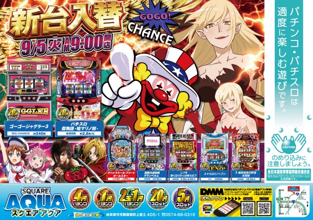スクエアアクア明日9/5日新台入替初日