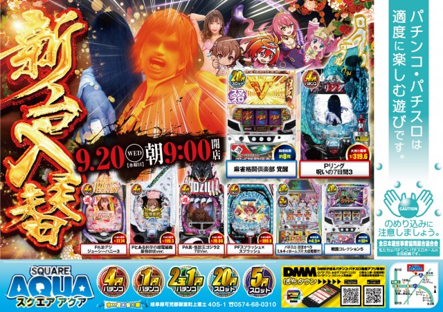 スクエアアクア明日9/20日新台入替初日