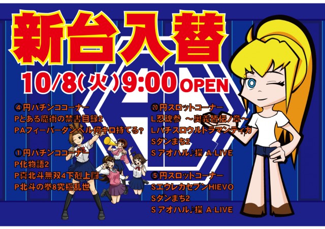 無し(新台入替前日はお休みを頂く場合も御座います。) |