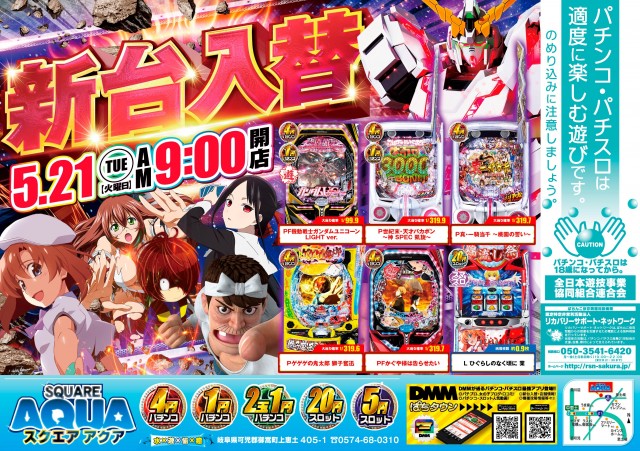 スクエアアクア明日5/21日新台入替初日