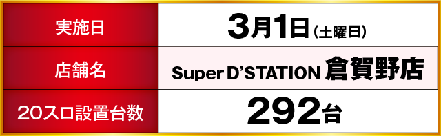 Super D’STATION倉賀野店 差枚ランキング(3月1日)