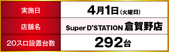 Super D’STATION倉賀野店 差枚ランキング(4月1日)