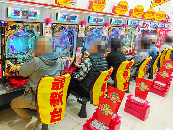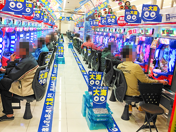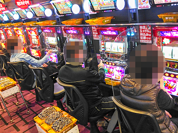 1円・0.5円・0.2円パチンコは全体的に高稼働。それぞれ空き台が見当たらないほどの盛況ぶりだった。