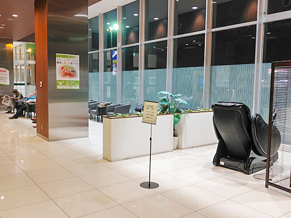 レストスペースは広々としていて実に開放的。マッサージチェアが用意されていることもあって、休憩時間などは有意義なひと時を過ごせるはずだ。