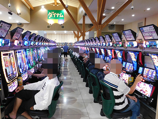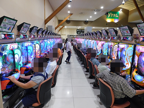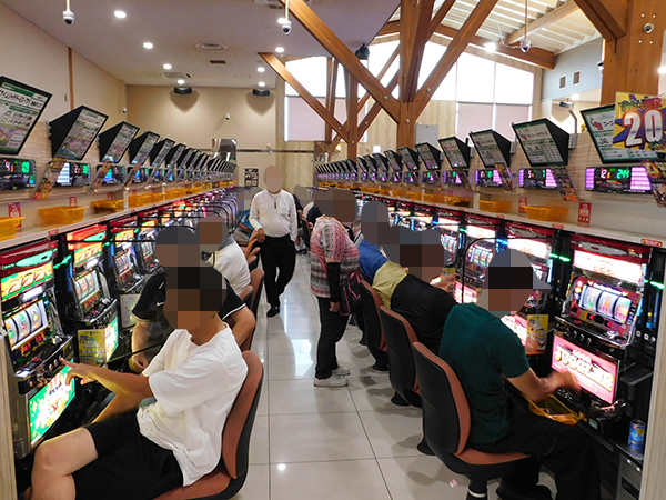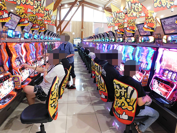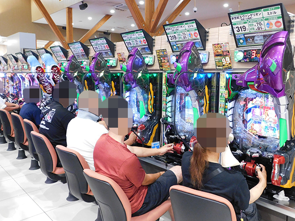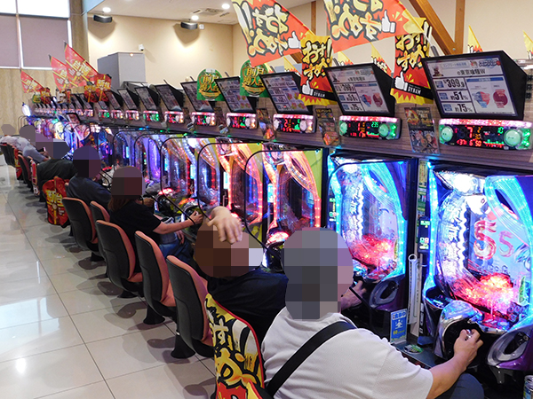 取材時は既に多くのプレイヤーが集結し、パチンコ・パチスロを問わずにぎやかな状況となっていた。