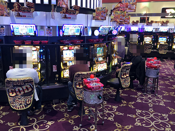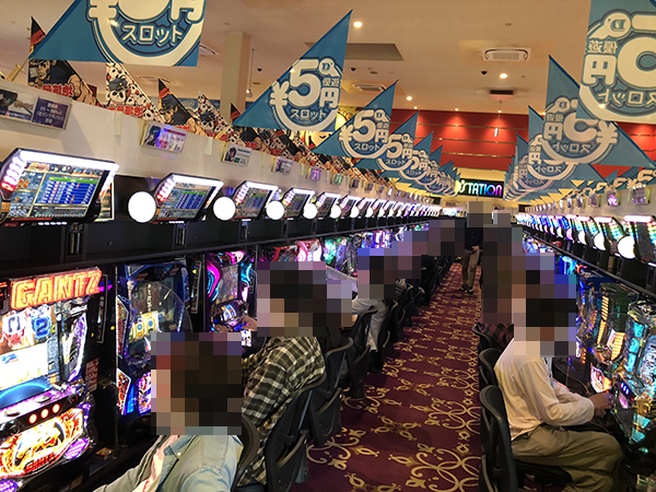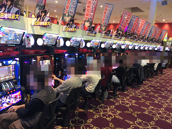 4円パチンコをみてみると、「CR大海物語4」がほぼ満席となるほどに好評。活躍をするプレイヤーが多く、シマ全体がにぎわいに包まれていた。