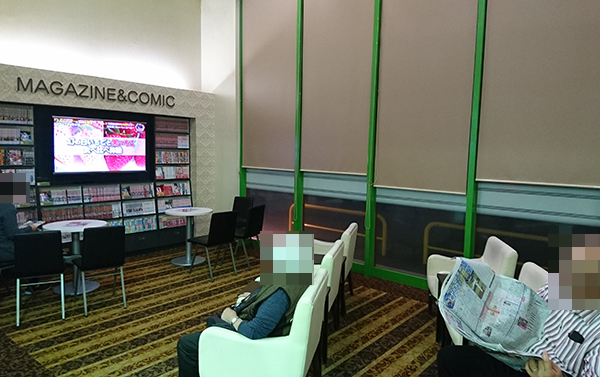 漫画本やテレビなどが完備されたレストスペースも広く、ゆったりとくつろげるといったイメージを持った。