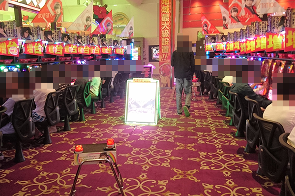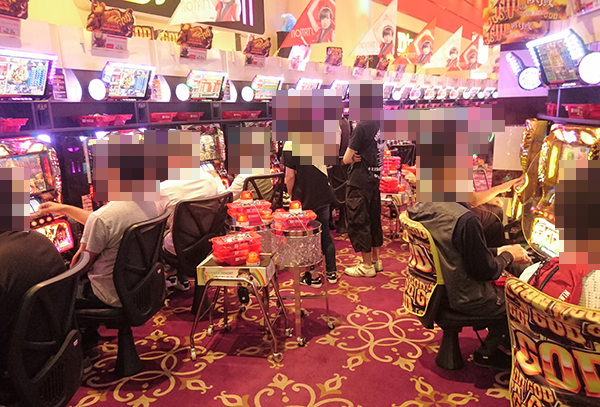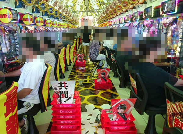 ジャグラーシリーズや「沖ドキ!-30」、「パチスロ 地獄少女 宵伽」なども活況で、シマ内は明るい雰囲気。