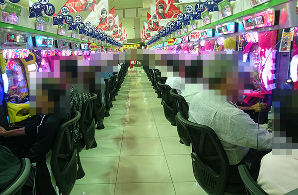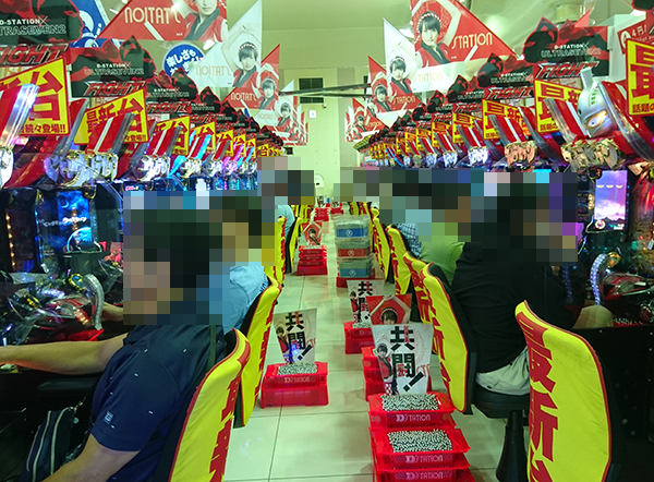 「CRフィーバー戦姫絶唱シンフォギア」や「CRぱちんこ魔法少女まどか☆マギカ」、「CRアナザーゴッドハーデス アドベント」など、さまざまな機種に遊技を楽しむプレイヤーの姿があった。